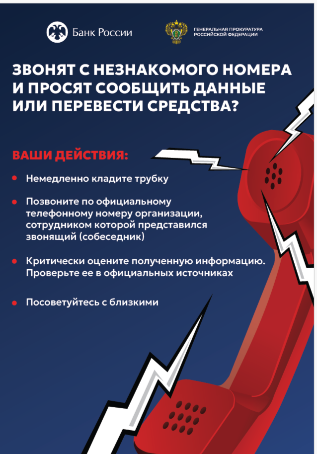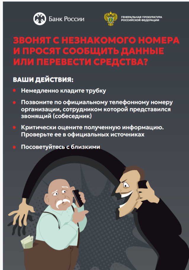Ознакомьтесь с материалами прокуратуры Нижегородской области "Звонят с незнакомого номера и просят данные или перевести средства?" в целях повышения уровня информированности населения о действиях лиц, вводящих в заблуждение в рамках хищения денежных средств